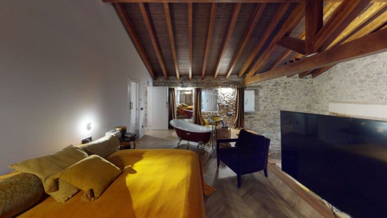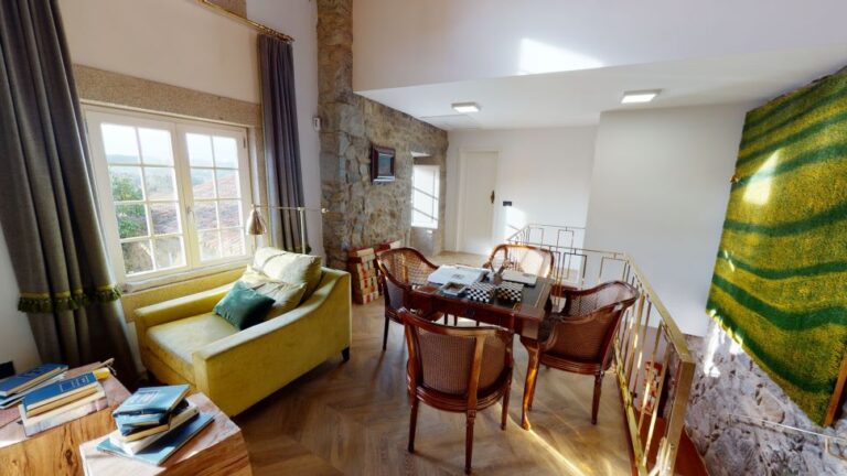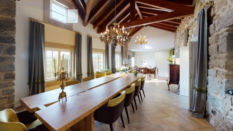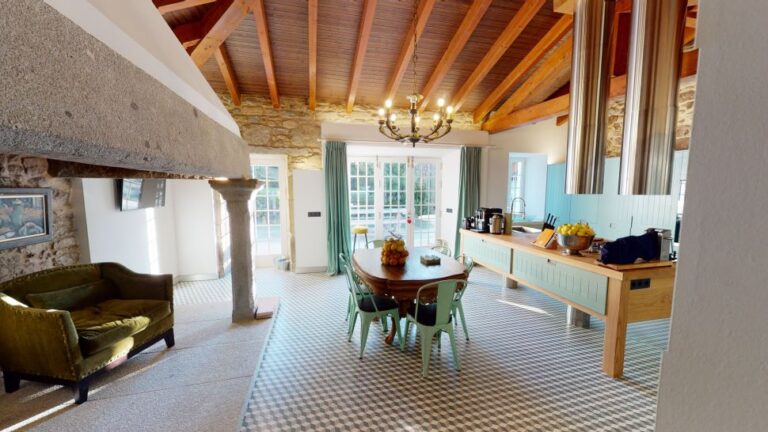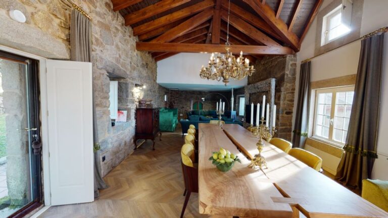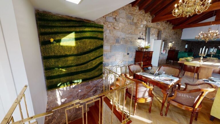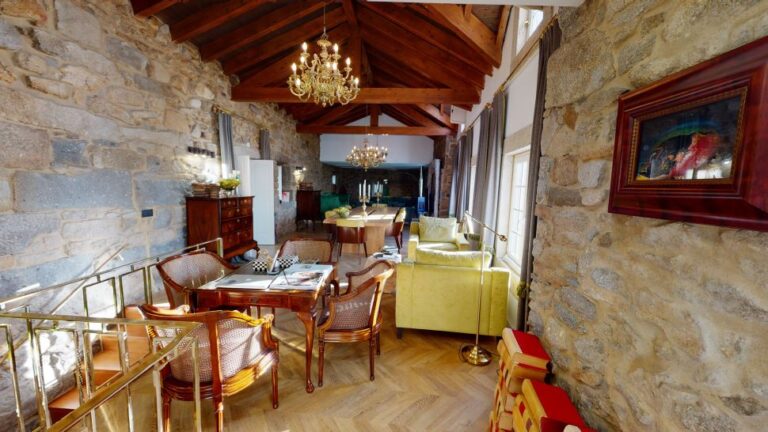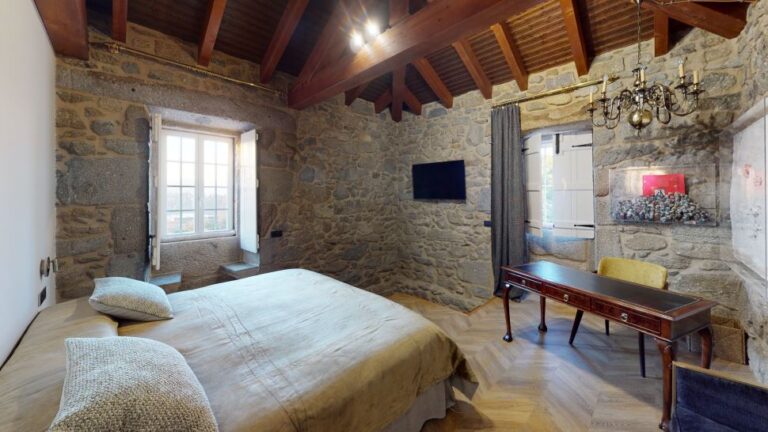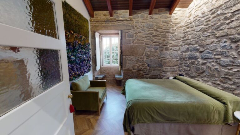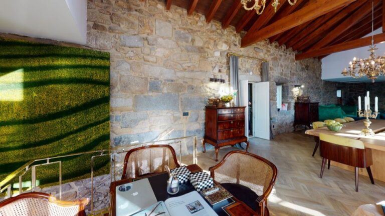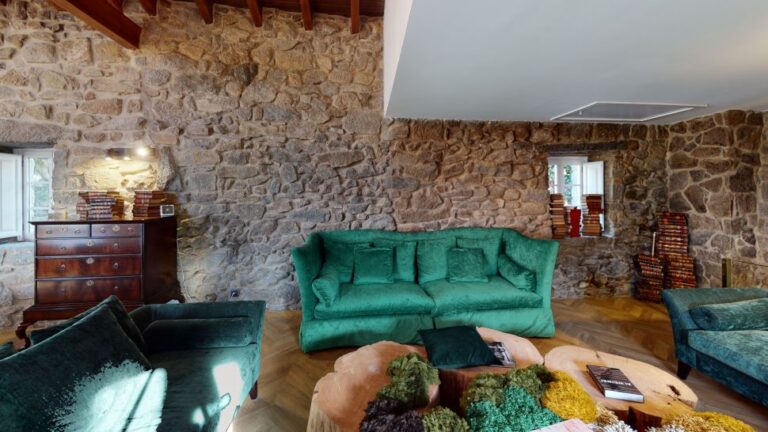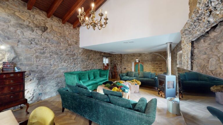 La reforma de los actuales propietarios llena de exquisitez y elegancia, sin perder en ningún momento la esencia de los Pazos y Casonas Gallegas, hacen de este enclave un lugar único. La piedra elemento principal en este tipo de edificaciones y el color verde que nos recuerda al color de paisaje gallego están presentes en toda la decoración del Pazo.