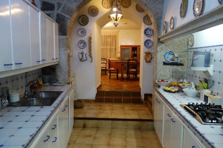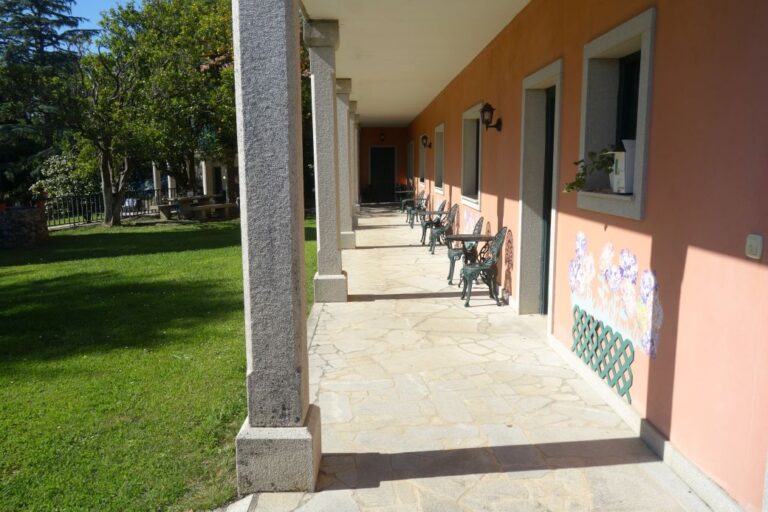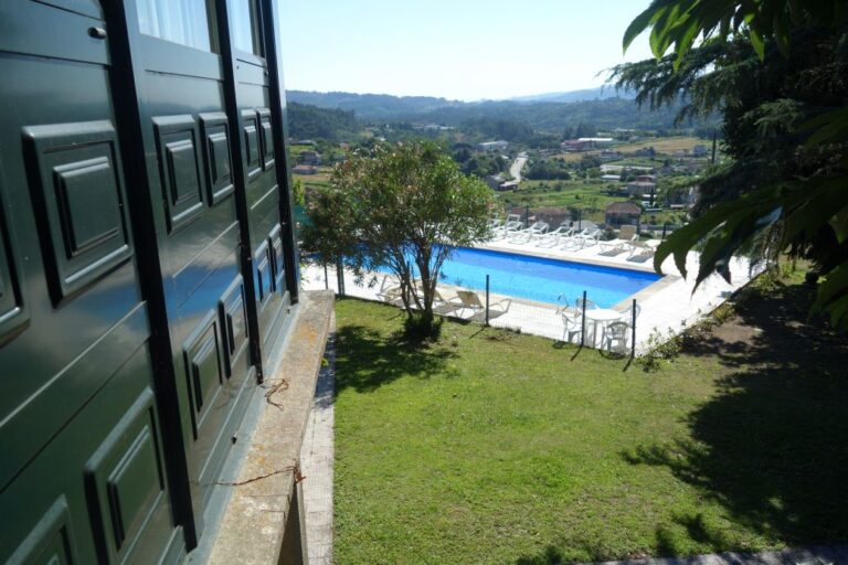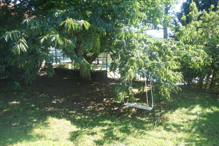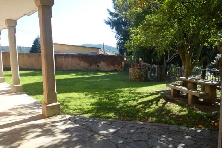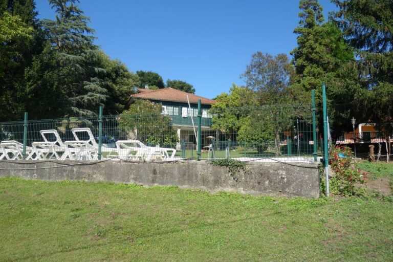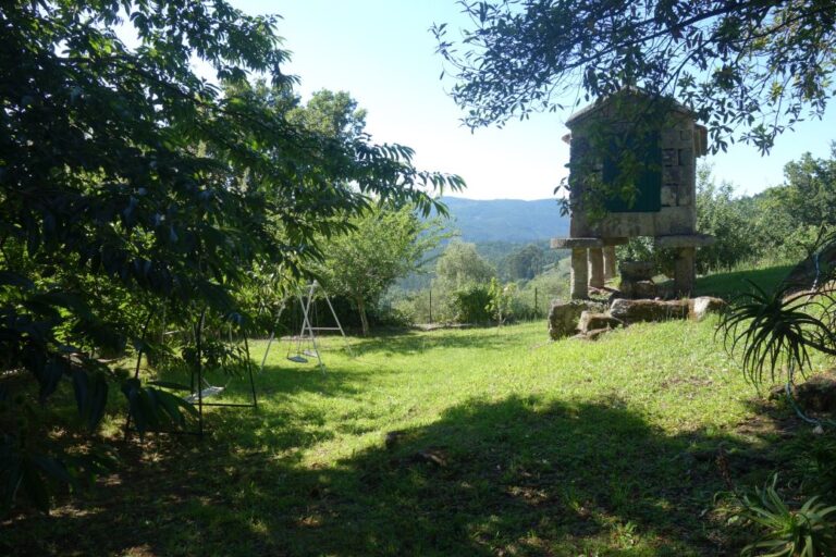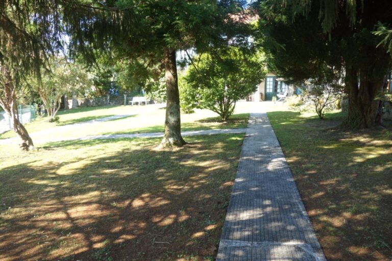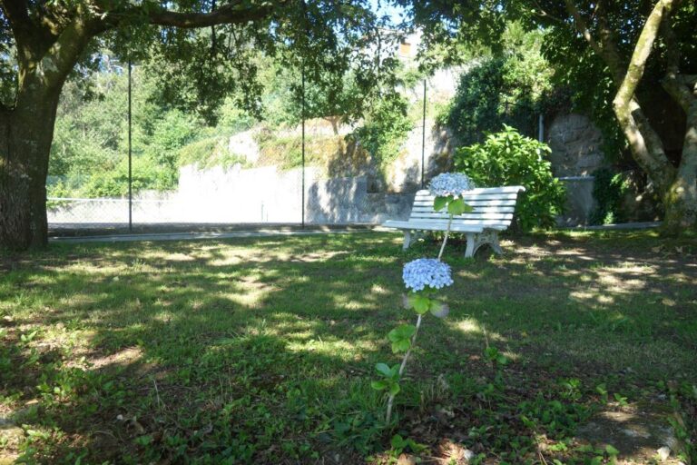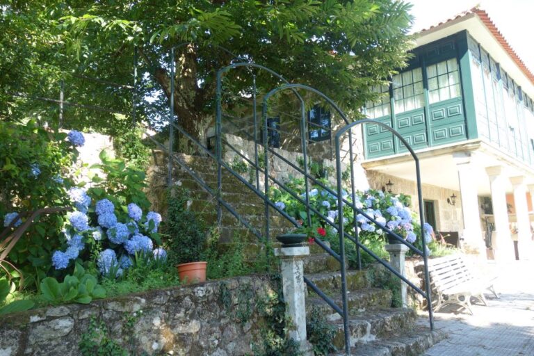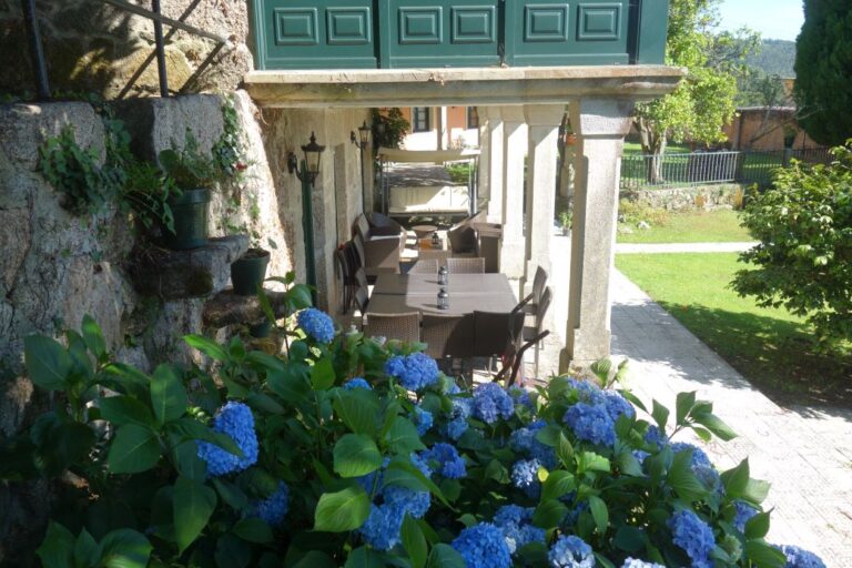 Desde el primer momento que ponemos los pies en la propiedad sentimos y apreciamos el cuidado esmerado de la misma, sus jardines plagados de árboles y plantas ornamentales nos invitan al descanso y el relax. La zona de la piscina y un hermoso porche de piedra, son dos zonas donde podremos disfrutar las las largas tardes de verano y de las impresionantes puestas del sol, apreciando al fondo parte de la isla de Tambo en la Ría de Pontevedra.