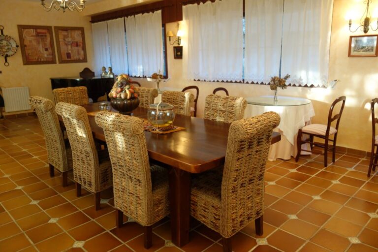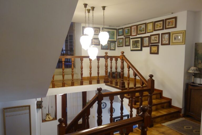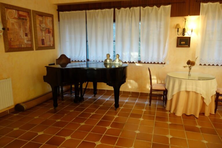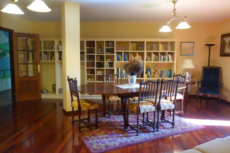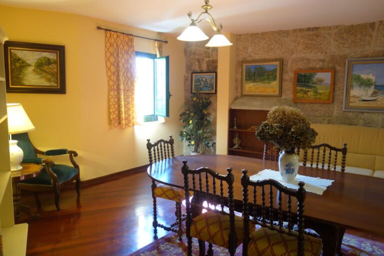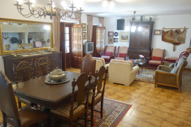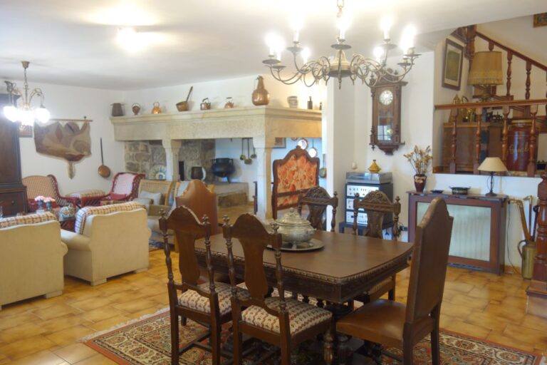 Si lo exteriores nos enamoran, no menos lo hace la vivienda que está distribuida en once amplias habitaciones cada cual más acogedora incluida una para personas con movilidad reducida, mención especial al gran comedor donde tenemos un espectacular piano de cola, dos cocinas, nueve baños, un gran salón de lectura con una gran librería, una segunda sala de estar o pequeño comedor en la planta alta de la vivienda y el gran salón de la planta baja con su chimenea y antigua lareira de piedra completan la distribución de esta propiedad.