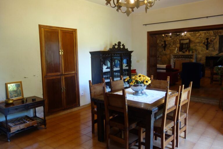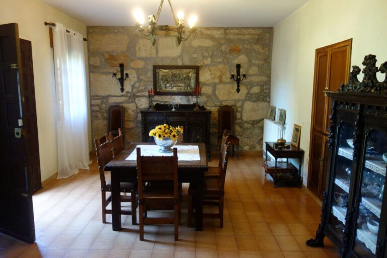 En planta baja disponemos de un amplio salón con chimenea y acceso a los jardines de la parte posterior de la vivienda, cocina con amplia despensa, sala de lavandería y calderas, dos amplias habitaciones y un baño completo. Accedemos a la planta primera a través de una majestuosa escalera de madera, en esta planta disponemos de siete habitaciones, tres baños y una bonita terraza que da al jardín