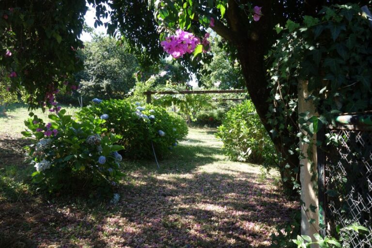 plagado de árboles frutales, plantas ornamentales y gran variedad de vegetación.