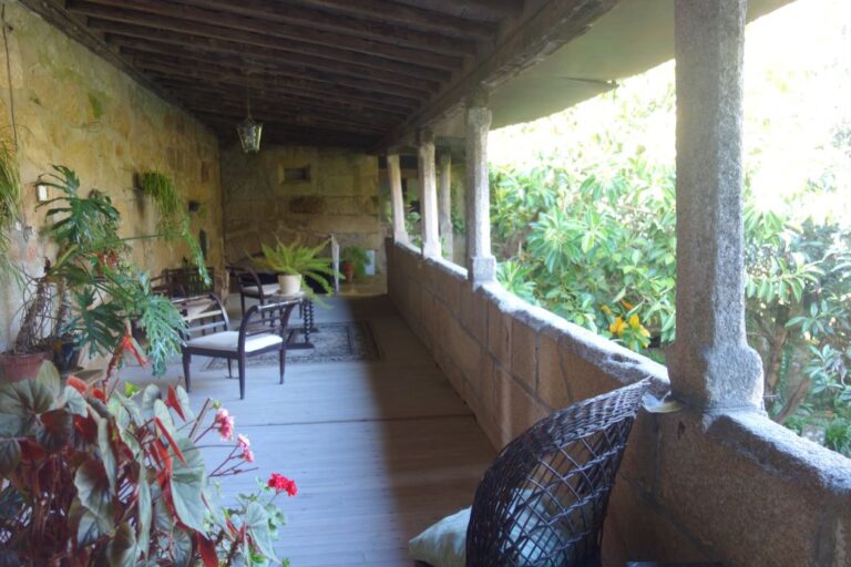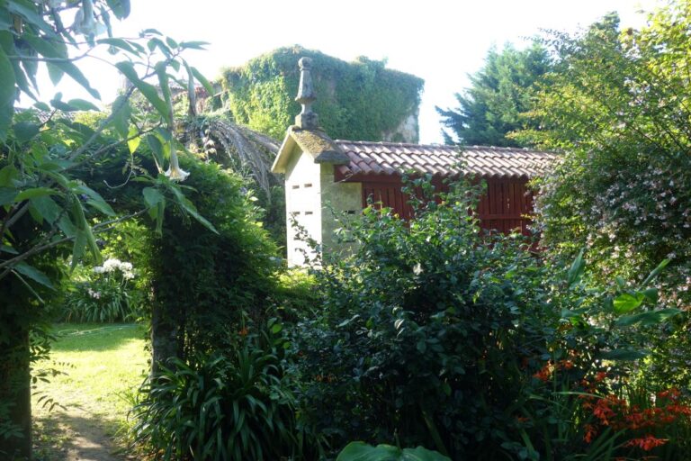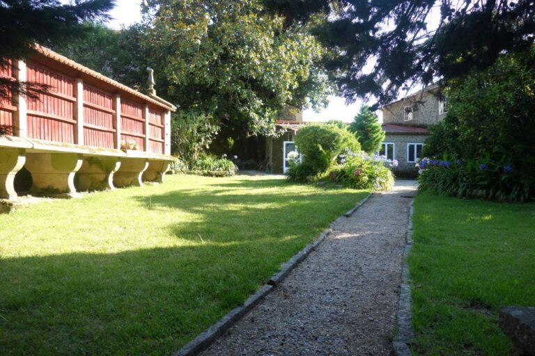 Su jardines plagado de árboles centenarios y plantas ornamentales cuidados con gran esmero y el impresiónate hórreo son parte de su gran atractivo, su conservación es muy buena pero necesita una restauración.
