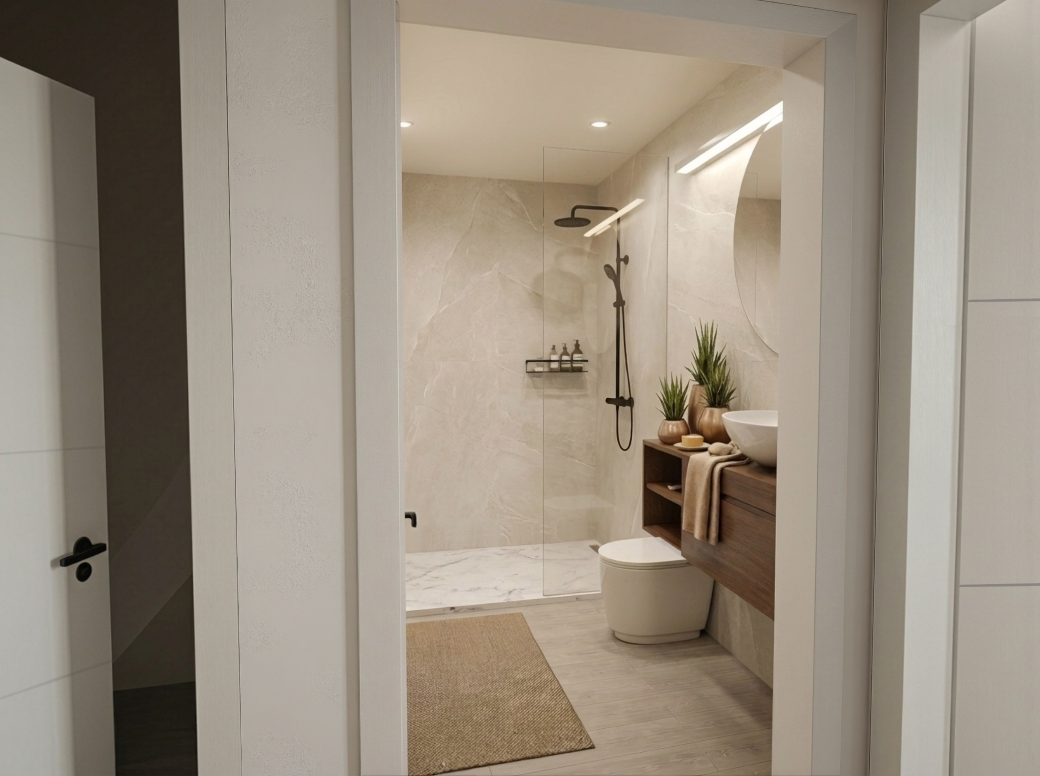 Baños revestidos y alicatados en porcelánico de primera calidad.